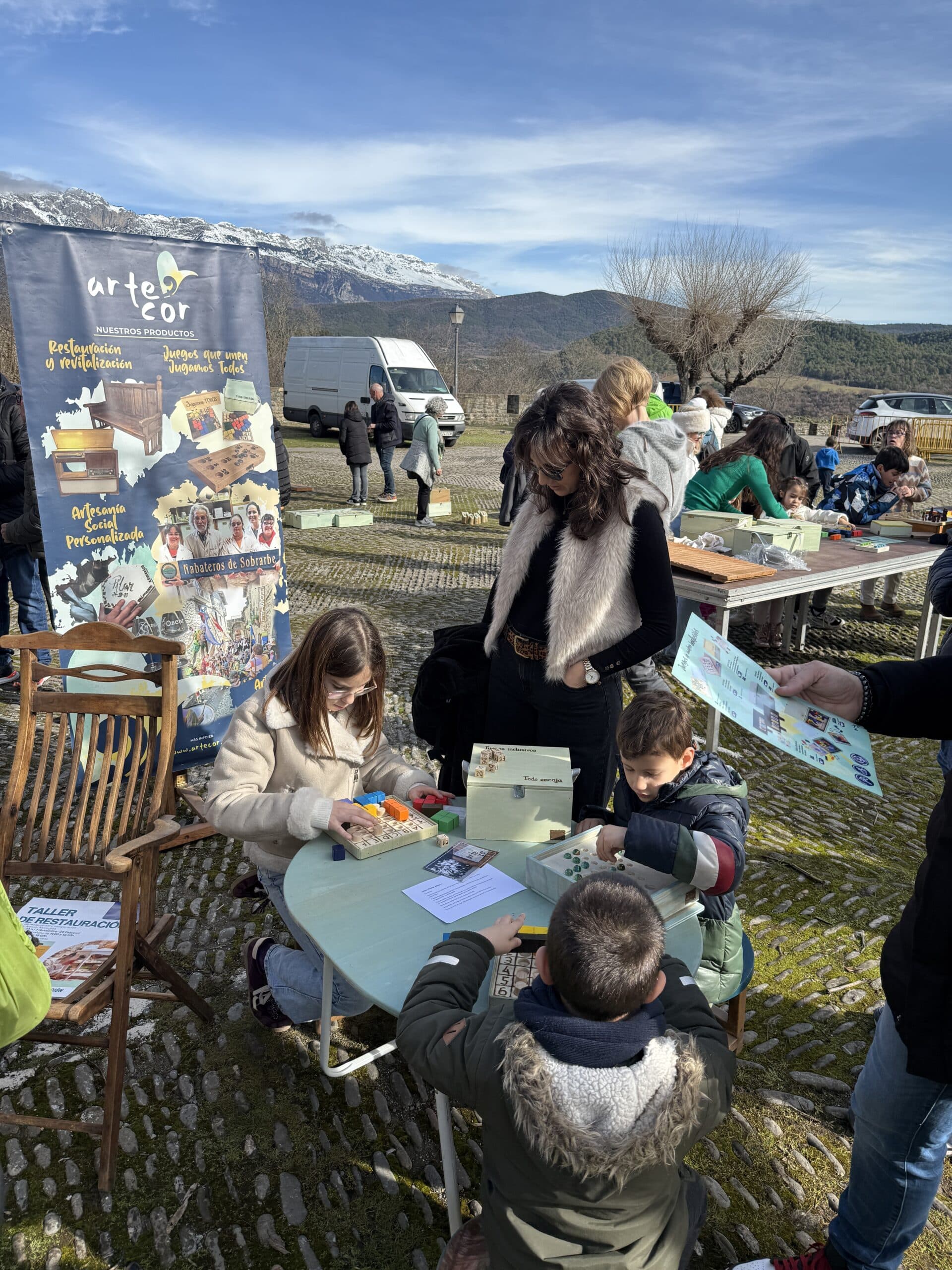 Los productores locales han vuelto a gozar de gran representación en la Villa Medieval con productos como la miel, el queso, la cosmética natural o la artesanía en madera, pero también expositores de otros lugares de España han contribuido a llenar el patio del Castillo, la carpa y la Plaza Mayor. Aceitunas de Jaén, embutidos de Palencia o Andorra, pan gallego, o el gâteau à la broche de la vecina Francia, así como el tejido social del territorio (Cruz Roja, Cáritas, alumnado del IES Sobrarbe, Artecor Monegros) han brillado en una jornada de temperaturas agradables y diversas propuestas para públicos de todas las edades.