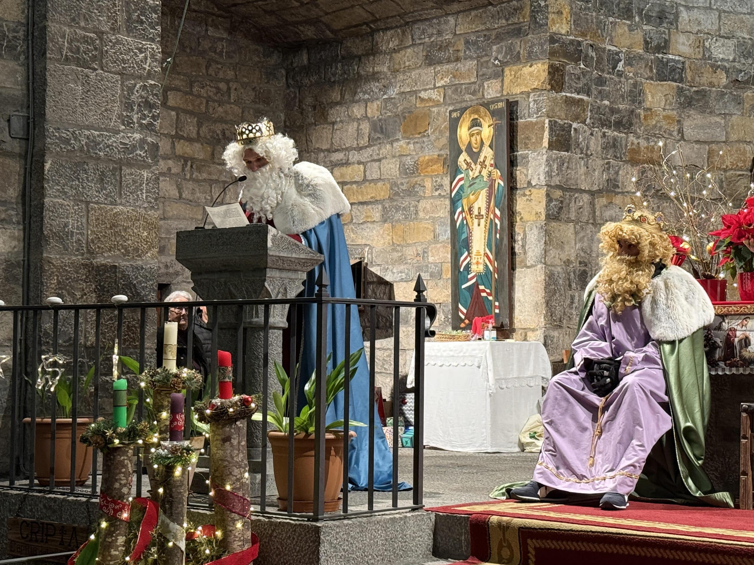 Ya en la iglesia, el alcalde Enrique Pueyo daba la bienvenida y se dirigía a los Reyes Magos pidiéndoles que en 2026 “traigan vivienda para el asentamiento de población, abastecimiento de agua para todos los pueblos que aún tienen dificultades, la adecuación de las pistas de deporte del instituto y del colegio y las carreteras entre Aínsa y Guaso y entre Olsón y Mondot”. También, decía, “esperamos que llegue el edificio de senderos del pumptrack, el demandado campo de césped artificial, y que sigamos siendo un destino privilegiado para el turismo y el disfrute de la naturaleza”. Nuevamente, la puesta a punto de la cabalgata ha salido adelante con la estrecha colaboración de la Asociación Cultural La Morisma y alumnado del IES Sobrarbe, prestando ayuda a Sus Majestades como pajes.